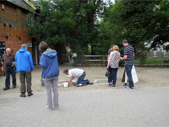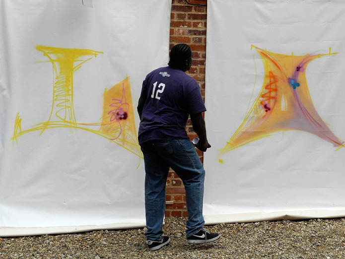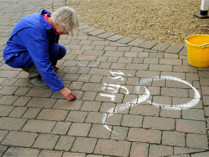 Using a variety of lettering styles and techniques we painted and drew on roads, steps, walls and fences. There was a lot of interest and enthusiasm – as well as the odd puzzled expression – from visitors to the site with many taking the time to visit the exhibition.