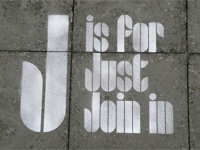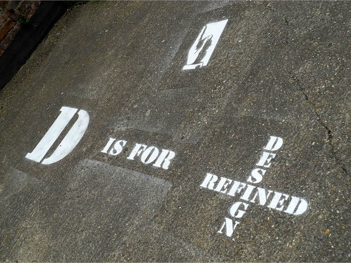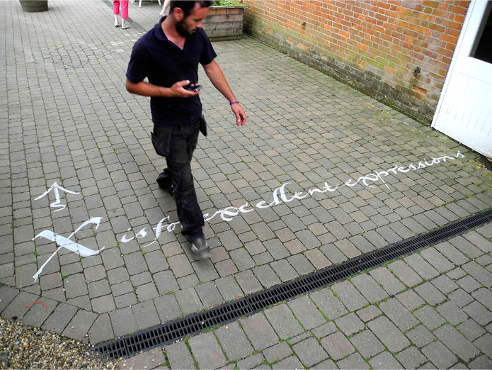 I came up with the idea of creating an A-Z lettering trail on the walls and pavements of the centre leading visitors to the gallery. I recruited four other Letter Exchange members with different skills and traditions to help me draw paint and spray the letters.
