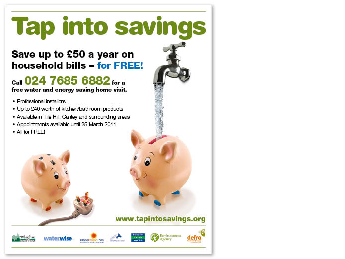 The Tap into Savings campaign was aimed at residents of social housing and promoted the idea that you can save money by saving water. The campaign also included messages about saving energy – in particular by using less hot water – and waste efficiency.