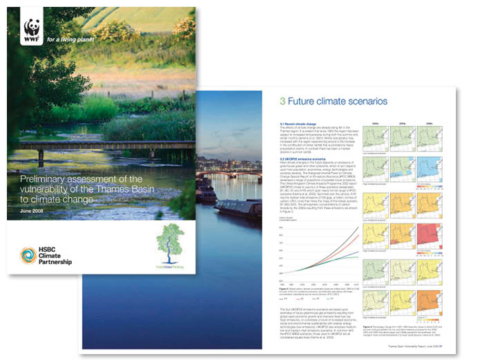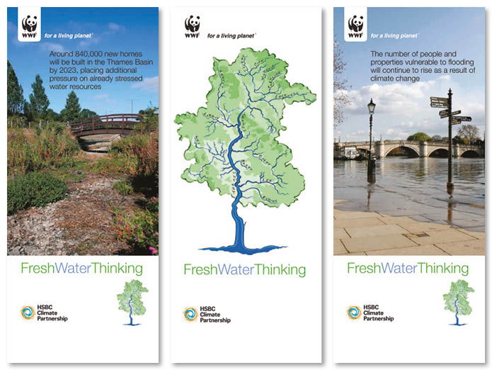 Fresh Water Thinking focussed on the effects of climate change and over-abstraction on the water quality in the Thames river basin. I developed the name of the campaign and the ‘tree’ logo based on the map of the Thames. I designed and produced the reports produced by the campaign.