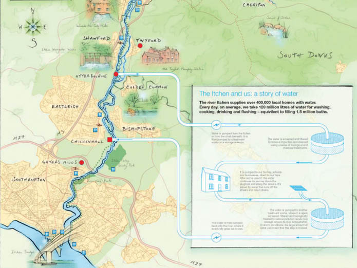 Map of the River Itchen from the Rivers on the Edge guide