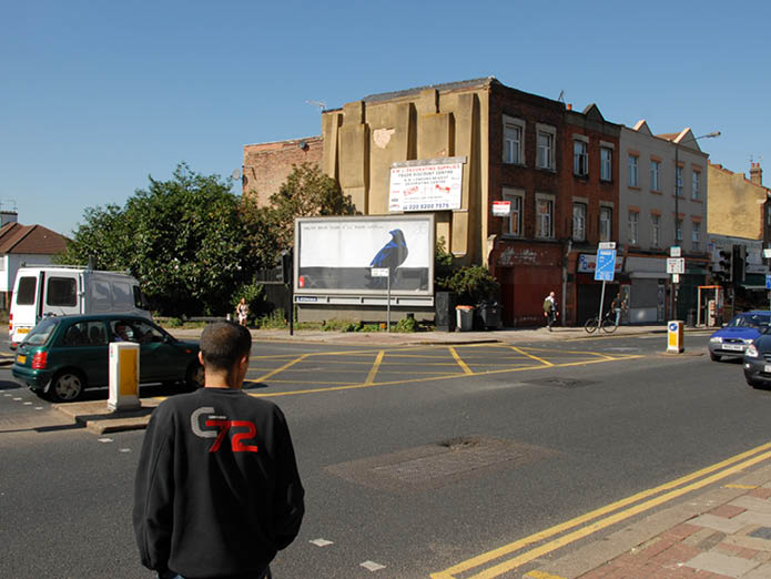 The road is still well used particularly by commuters heading back to the suburbs most of whom pass straight through this unlovely part of Hendon. But our poster site is at a junction and if you turn left, you quickly reach the Welsh Harp reservoir with its nature reserves and abundant bird life. It’s a little oasis amongst the traffic-choked roads of North West London.
