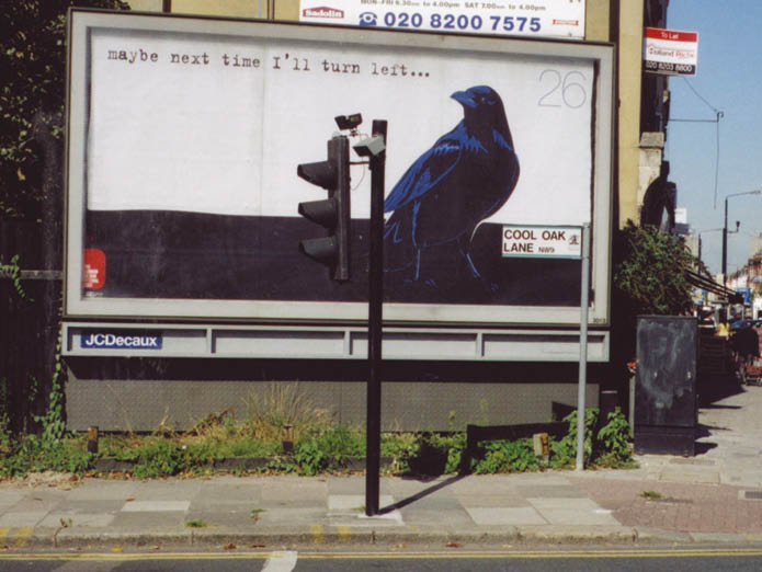 As part of the London Design Festival, writers’ group 26 developed a project to produce billboard posters across the capital. Each of the writers involved was asked to work with a designer to create a story in six words relevant to the poster location.