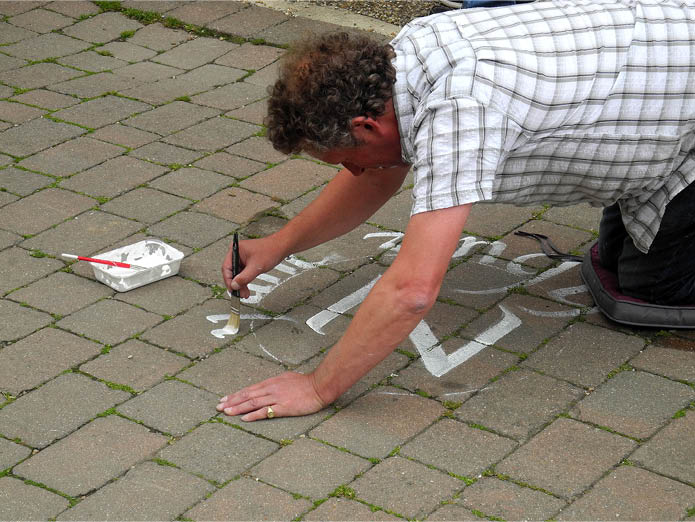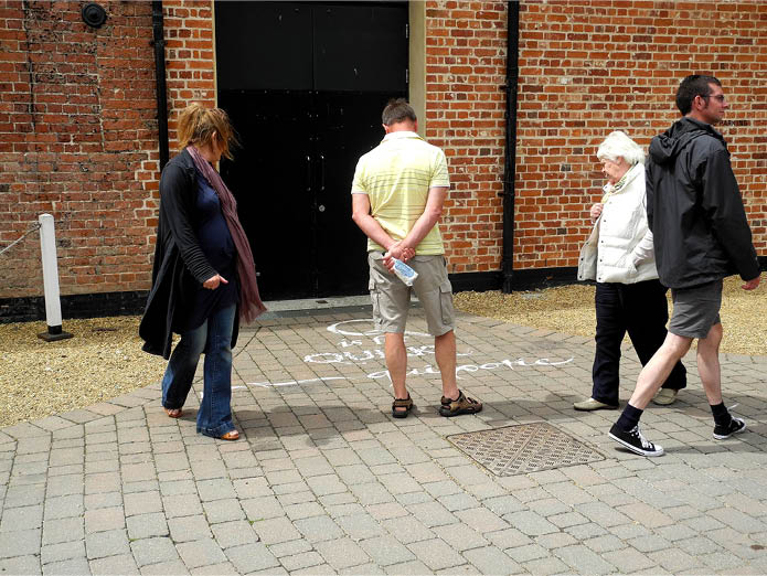 Using a variety of lettering styles and techniques we painted and drew on roads, steps, walls and fences. There was a lot of interest and enthusiasm – as well as the odd puzzled expression – from visitors to the site with many taking the time to visit the exhibition.
