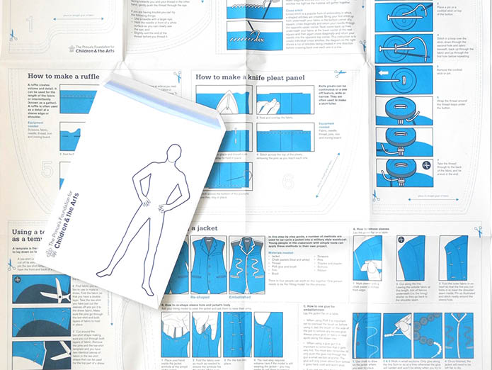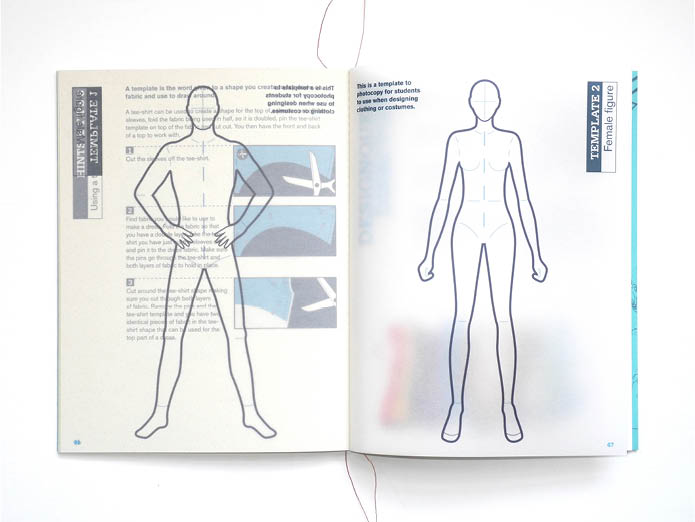 The handbook is accompanied by a poster showing all the hints and tips for creating your fashion design. I designed this to look like a clothes pattern and printed it on very thin stock. The A1 poster folds down to A5 and comes in an envelope