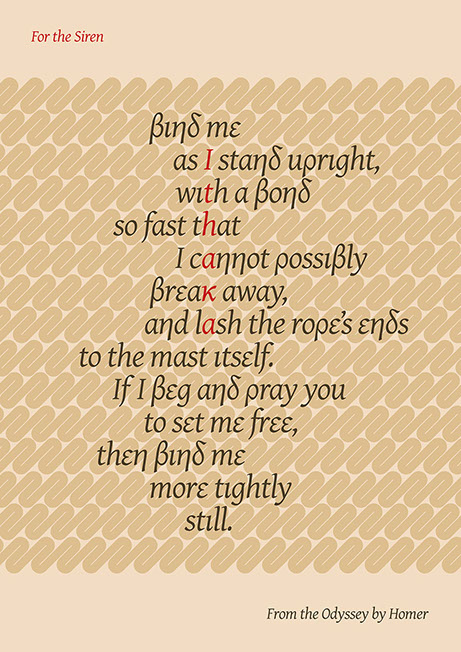 The Show Us Your Type destination for July 2014 was the Greek island of Ithaka. As the legendary home of Odysseus, a quote from the Odyssey by Homer seemed appropriate. The name of the island is picked out vertically from the text which is set in the typeface Gentium using a combination of Latin and Greek characters.