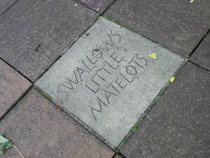 Since Findlay’s death in 2006 the garden is no longer being added to. Some of the inscriptions, particularly the wooden ones, are becoming worn, loosing their definition. The stone ones are being colonised by moss and lichen. Although there are no new works, the garden is still a dynamic, changing artwork, a tribute to Findlay’s artistic vision and the skills of the craftsmen that helped him realise it.