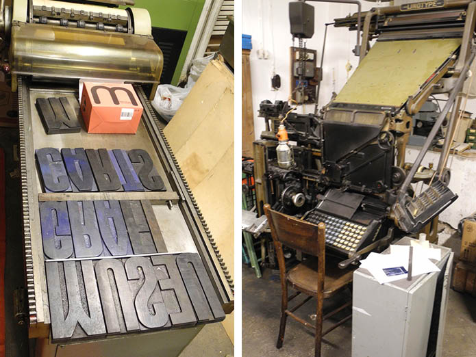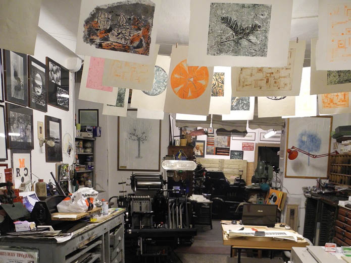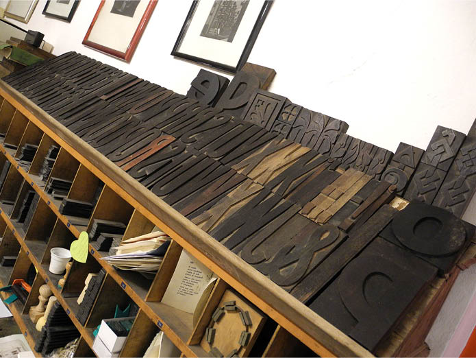 Although it is used mainly to print the etchings created by her mother, Rossana’s archive is much richer than that. As she showed me round, I came across a beautiful old Heidleburg press, an old Linotype metal typesetting contraption and some of the loveliest wood type I have ever seen. And she has a very impressive collection of (still working) early Apple Macs.