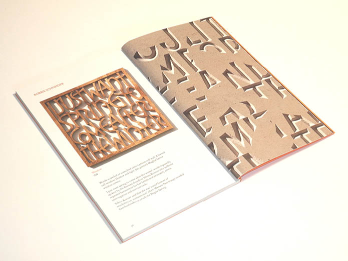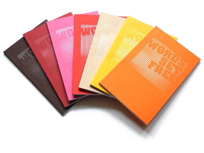 The logo also worked particularly well as a clear foil block on the cover of the catalogue. The small size of the catalogue, 130x210mm, is in response to the varying quality of the images of the exhibits which were all provided by the artists. By keeping the reproduction small, I was able to keep the quality of the images consistent. For the cover, I couldn’t decide what colour would be the most appropriate from the fabulous range available with Colourplan papers. In the end I decided to use seven different cover colours which allowed people to choose their favourites and made the display more interesting.