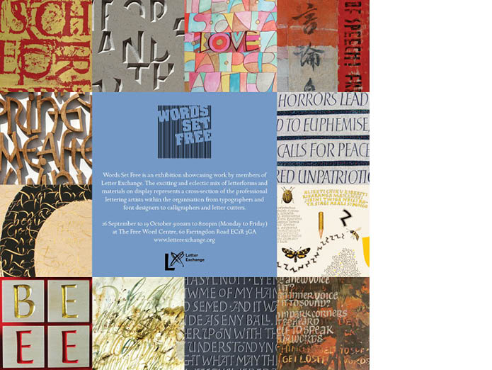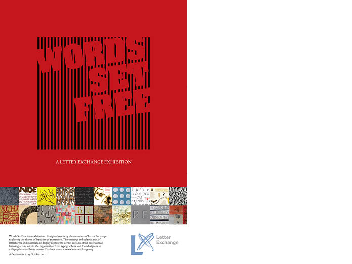 I wanted the exhibition logo to convey some of this freedom so created a block where the words are visible by their absence. This logo block proved to be very effective particularly on the poster used outside the opening venue, the Free Word Centre. They reported it generated more visitors and enquiries than for any previous exhibition.